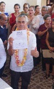 Fue así como acompañado de su esposa señora Olga Toledo Castillejos y sus hijas; así como del líder estatal de Morena, Manuel Huerta Ladrón de Guevara; el señor Nicolás Reyes recibió su constancia.