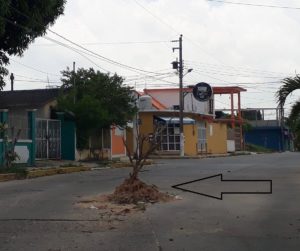 Como medida preventiva, vecinos de la calle Cristóbal Colón de la colonia Las Delicias sembraron un árbol a la mitad de la calle donde se socavo, para evitar que los vehículos cayeran.