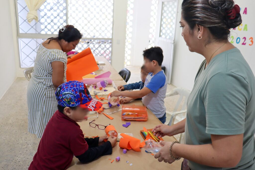 En el caso de las asesorías, el personal del espacio educativo apoya desde lo más básico a las niñas y niños de preescolar, así como de primaria, para que logren un desenvolvimiento en cuanto a su aprovechamiento escolar, usando el acervo bibliográfico y dinámicas.
