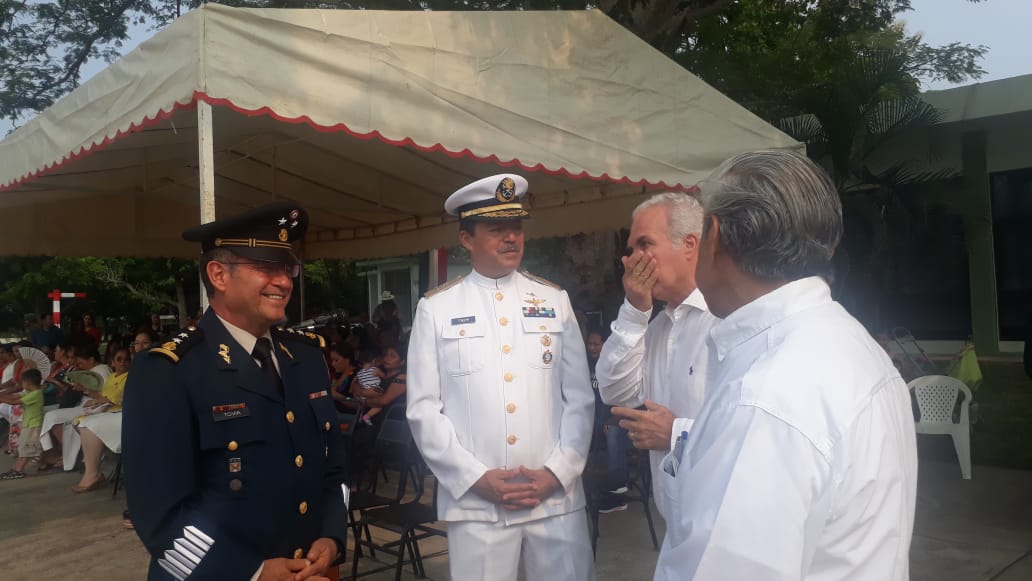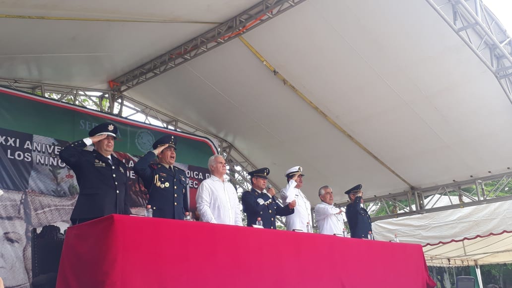 La ceremonia presidida por el General de Brigada DEM Juan Francisco Tobia Mazón, comandante de la 29 Zona Militar, y el alcalde de Minatitlán Nicolás Reyes Álvarez, realizaron el acto protocolorario de la colocación de las ofrendas florales, en el monumento a los niños héroes, en la colonia petrolera.