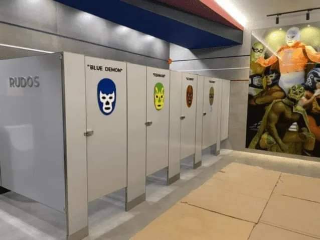 En el video se aprecian las diferentes temáticas de los sanitarios; en el de hombres, se puede observar que la temática es de la lucha libre mexicana y en uno de los tocadores de mujeres, la temática es sobre la arquitectura del Metro de la Ciudad de México.