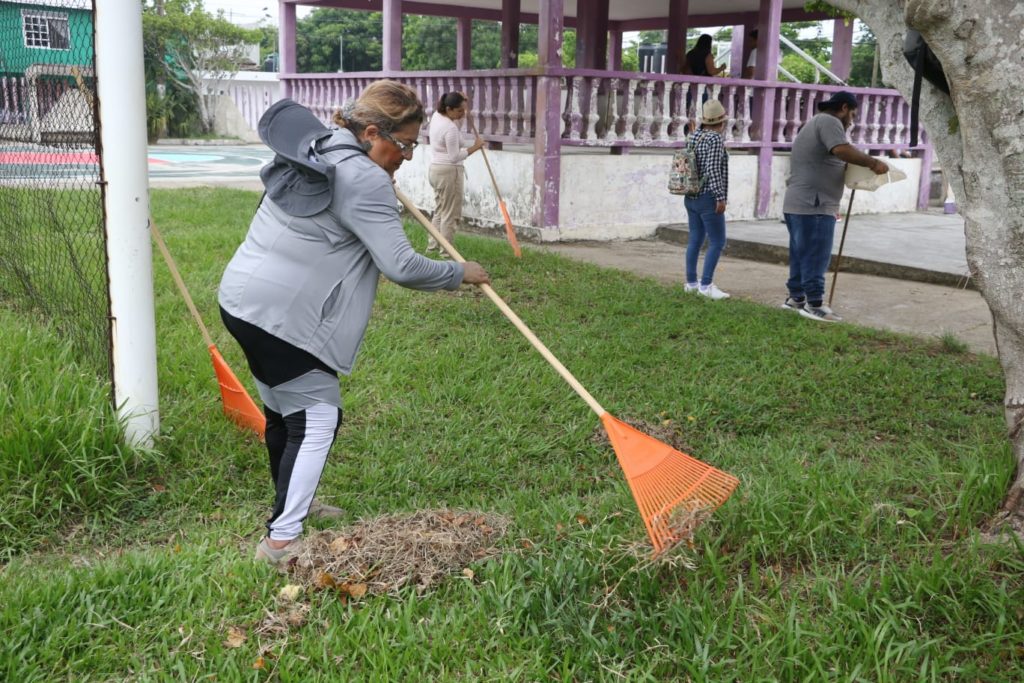 Este sábado, personal del Ayuntamiento de Nanchital, encabezado por la Alcaldesa Esmeralda Mora Zamudio continuó con los trabajos de la Brigada Transformando tu Colonia en el Campo de la CELACARI.