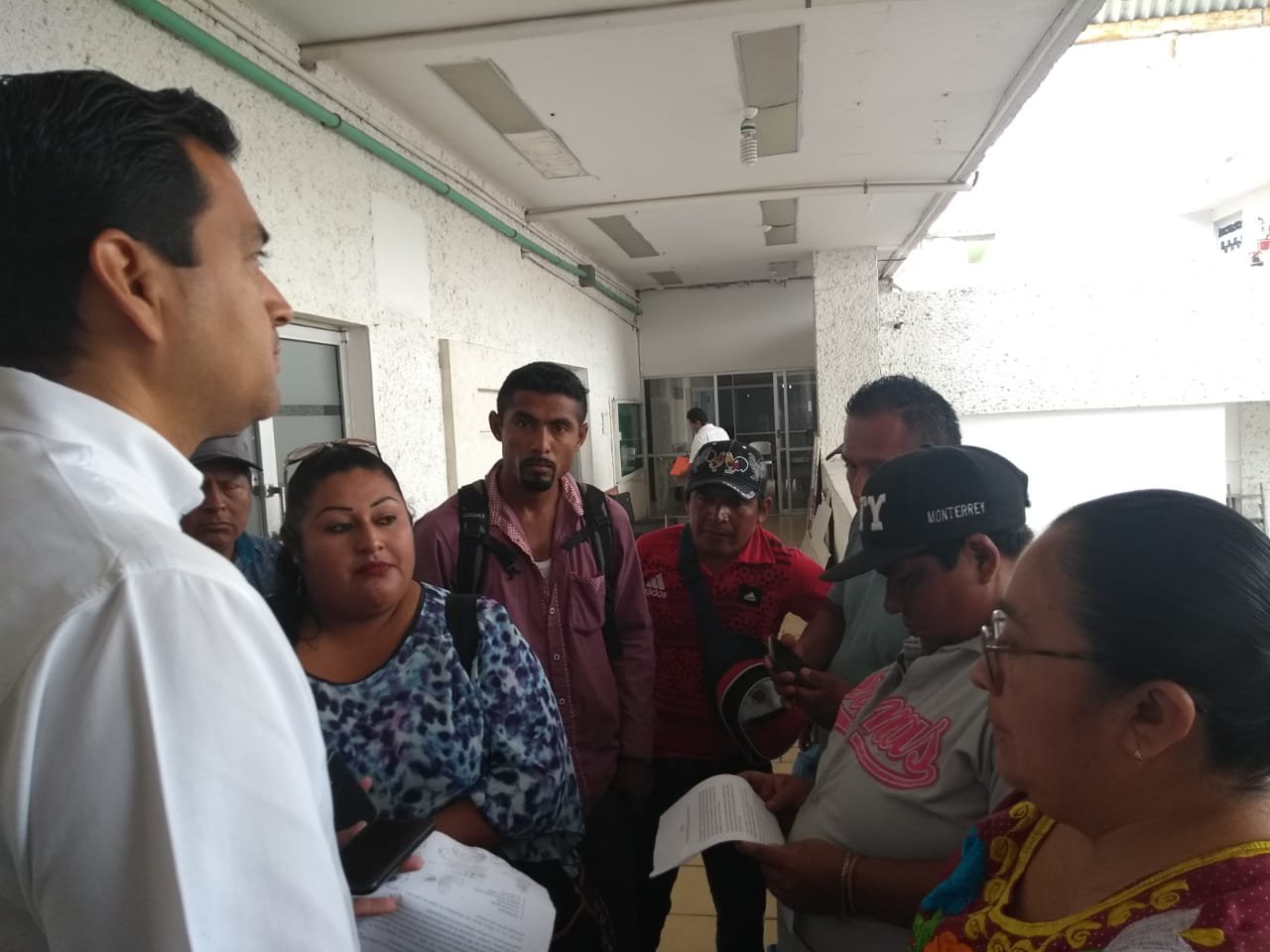 Después de una hora en la antesala de la presidencia, se informó a los representantes comunitarios que el alcalde no estaba, lo cual los incomodó; momentos después, a su salida, los alcanzó el regidor Raúl Atanasio a quien le pidieron que se fijara una audiencia con el alcalde, para que los apoye en su reclamo ante la Sader.