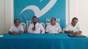 A las 11: 30 el candidato de Nueva Alianza, Rafael Mathey bajo el lema Visión + Trabajo= A progreso; presentó ante los medios de comunicación su planilla, donde dijo que sin duda la política no es un negocio sino la visión para mejorar la vida de las personas; “en este momento no hay mejor opción que nosotros, si el pueblo analiza y verifica a todos los candidatos puede ver que somos la mejor opción, podemos romper paradigmas para lograr un cambio, un cambio que lleva desarrollo, de nuevas ideas y proyectos que ayuden al área rural y urbana”.