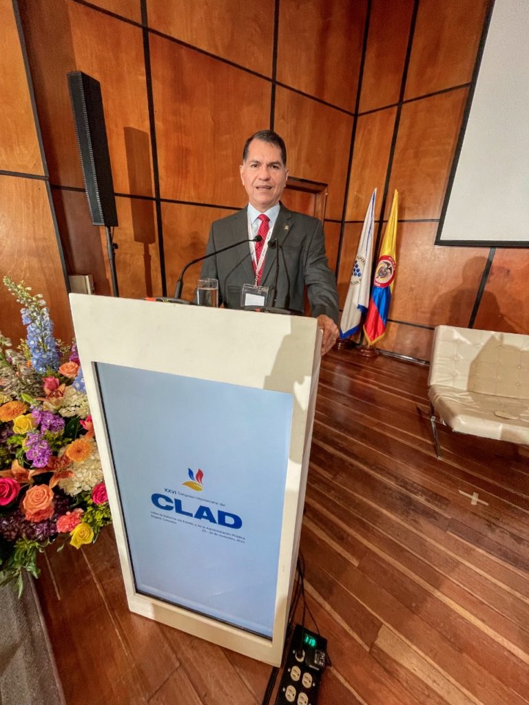 Coatzacoalcos, Ver. – El XXVI Congreso Internacional del Centro Latinoamericano de Administración para el Desarrollo (CLAD), en Bogotá, Colombia, recibió el día de hoy al Presidente Municipal, Víctor Manuel Carranza Rosaldo, quien disertó ante más de mil 500 personas, tanto en forma presencial como virtual, su tema: Reorganización de la Administración Pública Municipal Centralizada, la experiencia de Coatzacoalcos, Veracruz, México.