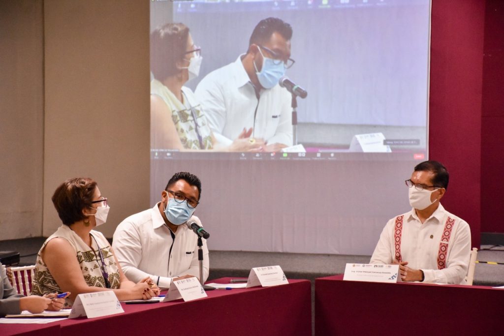 En forma virtual: Ing. Elio Hernández Gutiérrez, Titular de la Secretaría de Infraestructura y Obras Públicas; Mtro. Evaristo Ovando Ramírez, Titular de la Secretaría de Desarrollo Agropecuario, Rural y Pesca; Dra. Waltraud Martínez Olvera, Titular de la Oficina de Programa de Gobierno; en representación del Ing. Químico Juan Carlos Contreras Bautista, Titular de la Secretaría de Medio Ambiente acudió la Mtra. Elida Reyes Fentanes, Directora General de Gestión Ambiental y Recursos Naturales; por parte del Lic. Enrique de Jesús Chacón García, Titular de la Secretaría de Desarrollo de Desarrollo Económico y Portuario se encontró el coordinador de Proyectos Estratégicos y del Istmo de Tehuantepec, Víctor Gonzalo Romero Sánchez y la Directora de consulta y Atracción de Inversiones, Ing. Xóchitl Soto Torres; así como el Mtro. Roberto Sánchez Venga, enlace de SEEDESOL en el Corredor Interoceánico del Istmo de Tehuantepec.