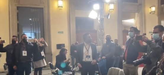 “En solidaridad por los periodistas caídos desde Calderón hasta nuestros días, la mayoría de los que estamos aquí queremos, con todo respeto, decirle que este día no le queremos formular preguntas en solidaridad con estas acciones que hizo el gremio periodístico en el poder legislativo”, expuso Rodolfo Montes, en referencia a las manifestaciones de comunicadores en la Cámara de Diputados y en el Senado.