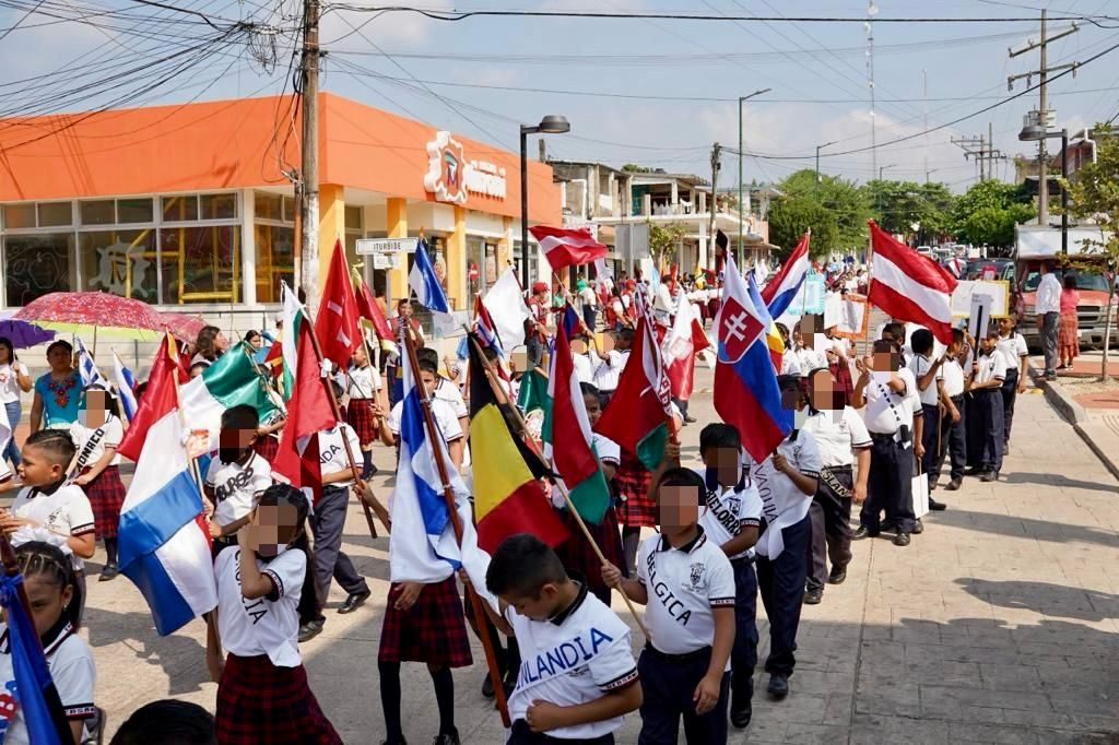 Unidos por un mundo mejor, con banderas, trajes de todos los países y globos blancos, los pequeñines acompañados por sus maestros y papás recorrieron las calles: Eulalio Vela, Correos hasta llegar a la calle Miguel Hidalgo, frente al palacio municipal donde saludaron a las autoridades municipales, quienes reconocieron el esfuerzo, la energía y el entusiasmo de cada infante.