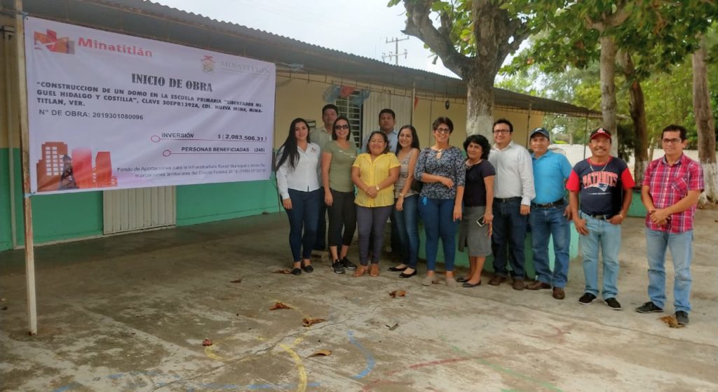 Con una inversión conjunta de 7 millones 456 mil 353.88 pesos del Fondo para la Infraestructura Social Municipal se construirán domos en los Jardines de Niños María Enriqueta Camarillo e Insurgentes, así como en las Escuelas Primarias Libertador Miguel Hidalgo y Tierra y Libertad, dentro de las acciones que emprende el Gobierno Municipal para contribuir a mejorar la calidad de la enseñanza en Minatitlán.