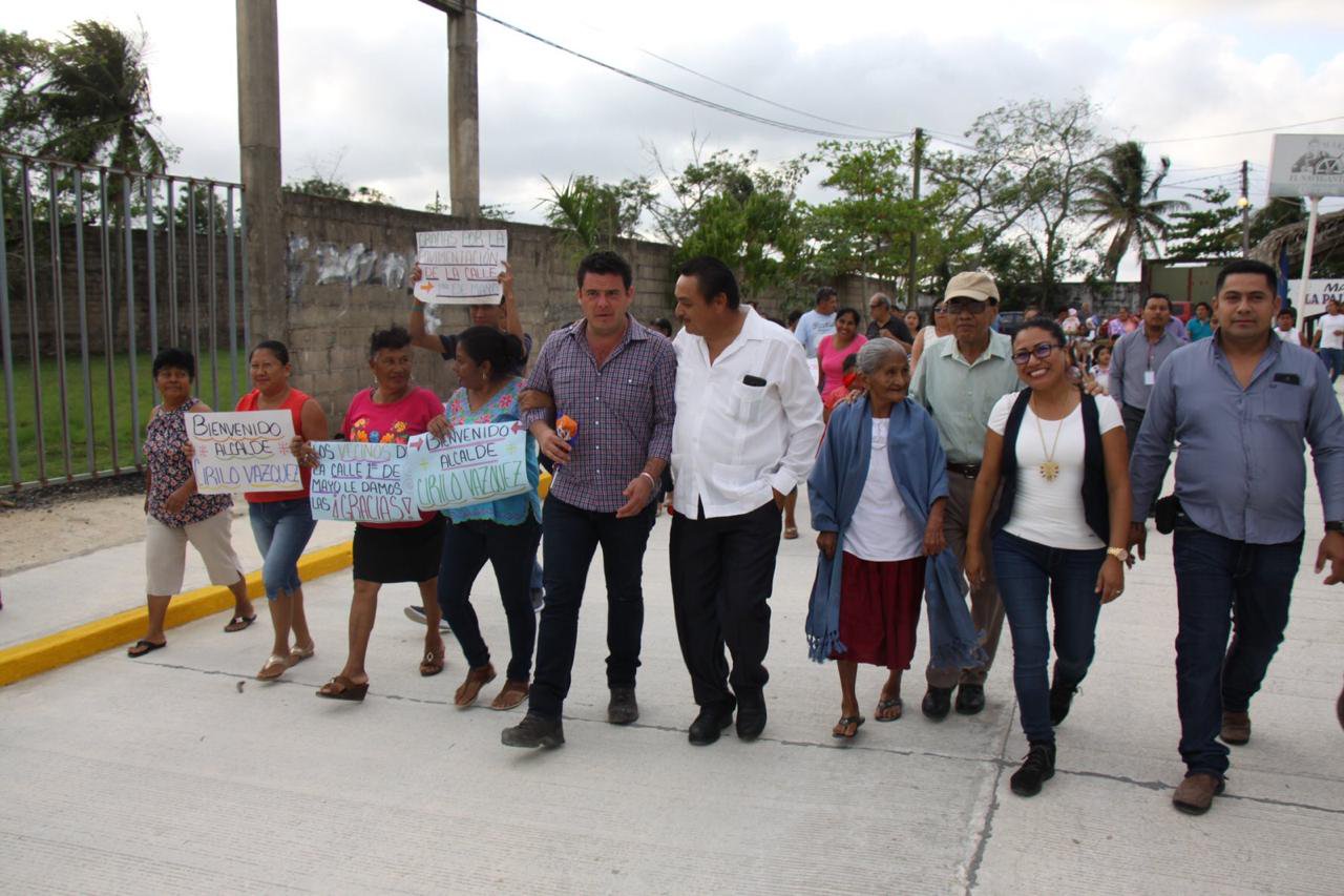 “La responsabilidad de mi gobierno es dar mejores servicios de calidad; mi compromiso es el progreso de Cosoleacaque, en las calles principales gestionaremos los recursos para pavimentarlas con concreto hidráulico y en las demás gestionaremos el apoyo para guarniciones y banquetas”, afirmó.