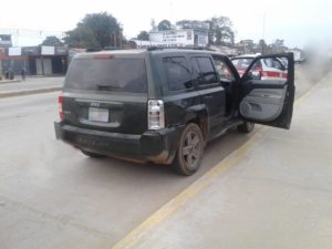 Finalmente, en la Carretera Transístmica esquina con la calle Correos del barrio Segundo, elementos de la Policía Estatal localizaron una camioneta Jeep, tipo Patriot, modelo 2007, con placas YKL-8418; la cual, de acuerdo al C-4, contaba con reporte de robo. En el lugar se hizo detención de quien se identificó como Santiago “N” de 40 años.
