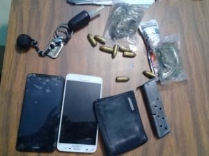 Al primero se le aseguró un arma tipo escuadra, marca Smith & Wesson, modelo 39-2, matrícula A182856, calibre 9 mm, con un cargador y cinco cartuchos útiles. Al segundo, tres bolsitas plásticas con hierba seca con características propias de marihuana; se procedió a la detención de los implicados y al aseguramiento del automóvil.