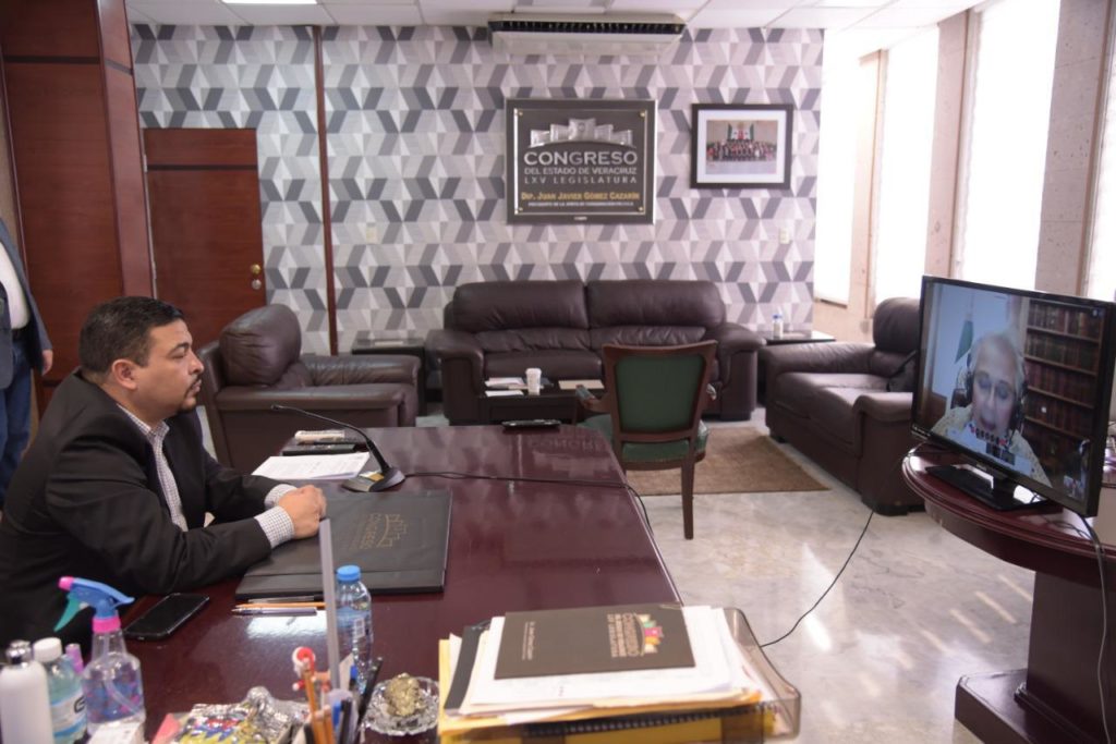 Xalapa, Veracruz., 4 de Mayo de 2020.- Mediante videoconferencia, el presidente de la Junta de Coordinación Política (JUCOPO) de la LXV Legislatura de Veracruz, Juan Javier Gómez Cazarín, dialogó con la secretaria de Gobernación, Olga Sánchez Cordero, sobre la armonización de las legislaciones locales con las reformas federales en materia de violencia política y paridad de género, para garantizar la participación de las mujeres en la vida pública.