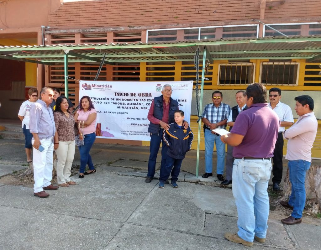 Fue el fin de semana cuando personal de la Dirección de Obras Públicas y de Participación ciudadana estuvieron presentes en la Escuela Primaria Artículo 123 Miguel Alemán, de la colonia de Los Maestros, en donde se dio inicio con el proyecto de construcción del domo en esta institución, que tendrá una inversión de 4 millones 410 mil 51.82 pesos del Fondo para la Infraestructura Social Municipal.