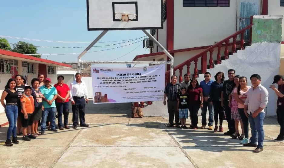 Asimismo se llevó a cabo el protocolo de inicio de obra en la Escuela Primaria Organización de las Naciones Unidas para la que se han destinado 785 mil 68.89 pesos para construir un domo que permita facilitar las actividades deportivas y cívicas de los alumnos que diariamente acuden a estos centros escolares en donde no padecerán más a causa de las condiciones climáticas.