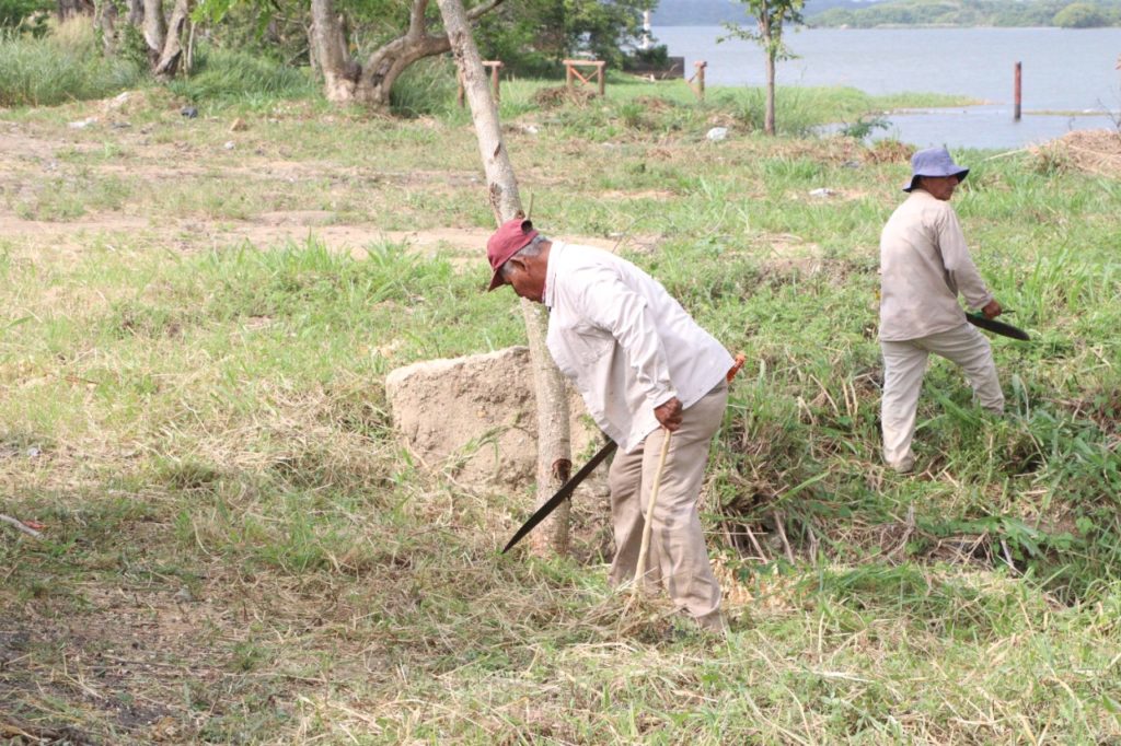 Nanchital, Ver. – Personal de Servicios Municipales avanzan en el rescate de las áreas verdes restantes en la orilla del río Coatzacoalcos, con el fin de crear un nuevo espacio sustentable, amigable con el medio ambiente y recreativo.