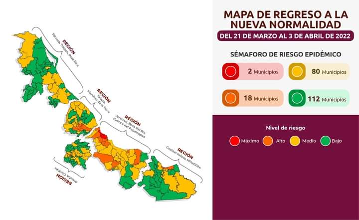 Share Tras 14 días de estar en máximo riesgo de contagios de Covid-19, Coatzacoalcos retrocedió al semáforo epidemiológico color naranja. Entrará en vigor del 21 de marzo al 2 de abril; en el sur es el único municipio en riesgo alto.