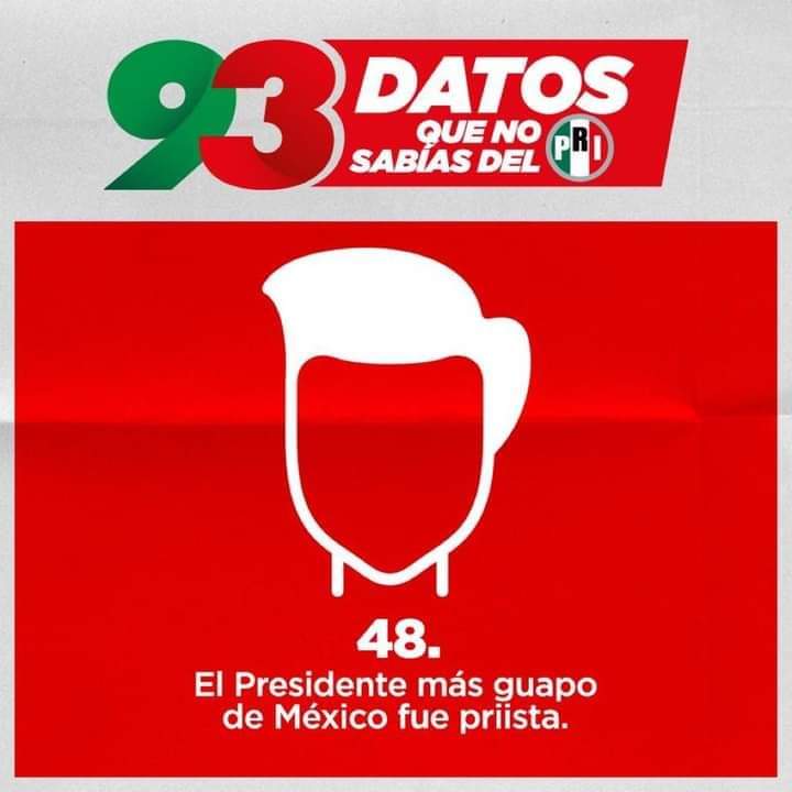 “El Presidente más guapo de México fue priísta“, presumió el Partido Revolucionario Institucional (PRI) como parte de una campaña en redes sociales por los 93 años de este partido.