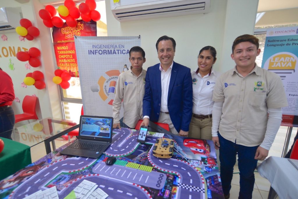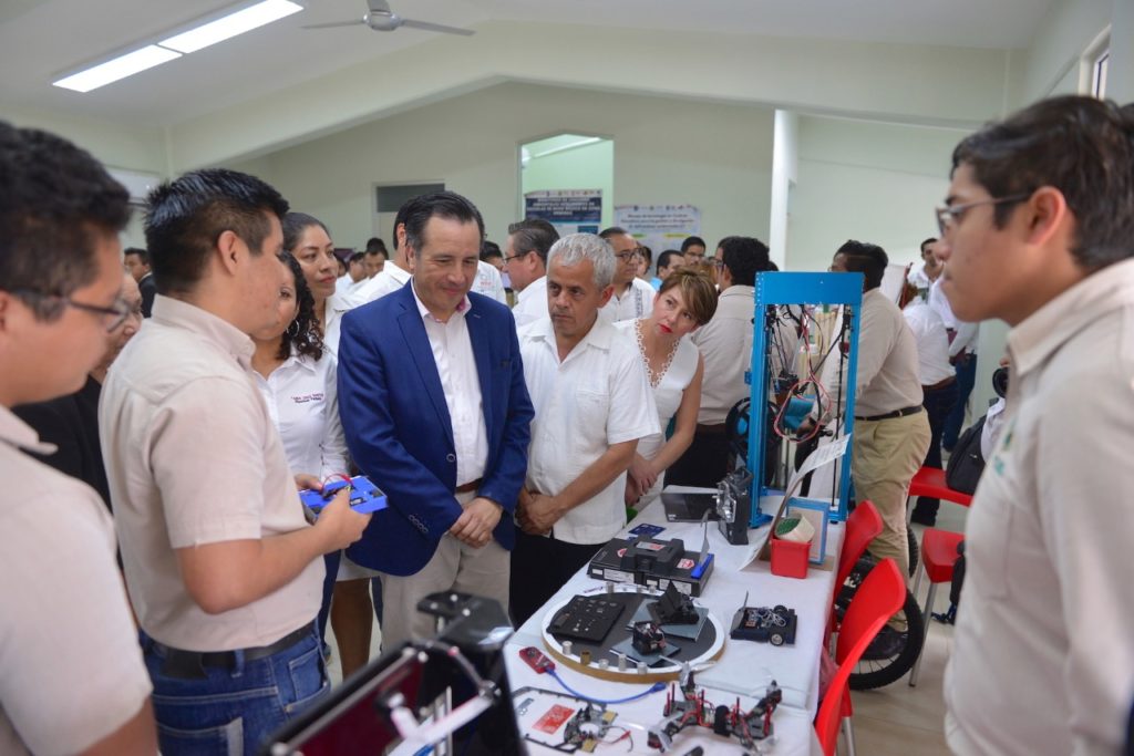 Acompañado por el presidente municipal, Víctor Manuel Carranza Rosaldo, y las diputadas federal, Tania Cruz Santos, y local, Jessica Ramírez Cisneros, el Gobernador recorrió una exposición de trabajos de los jóvenes que cursan las diferentes carreras del ITESCO.