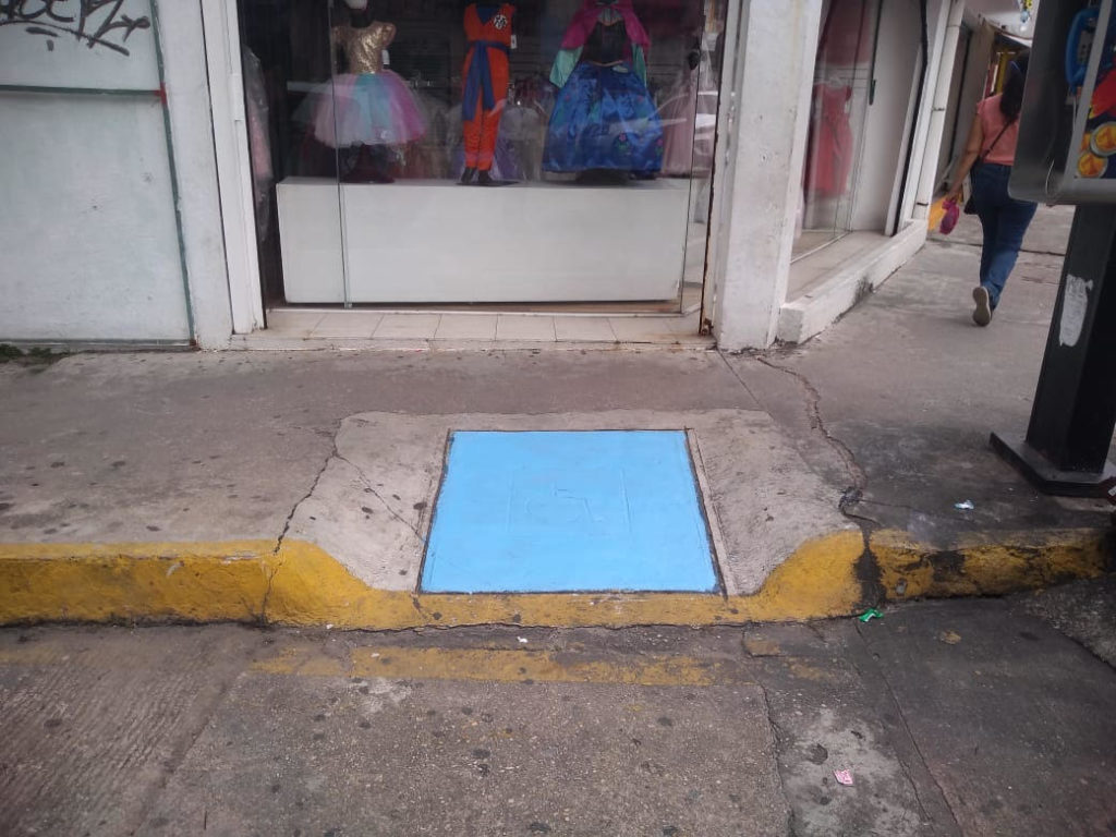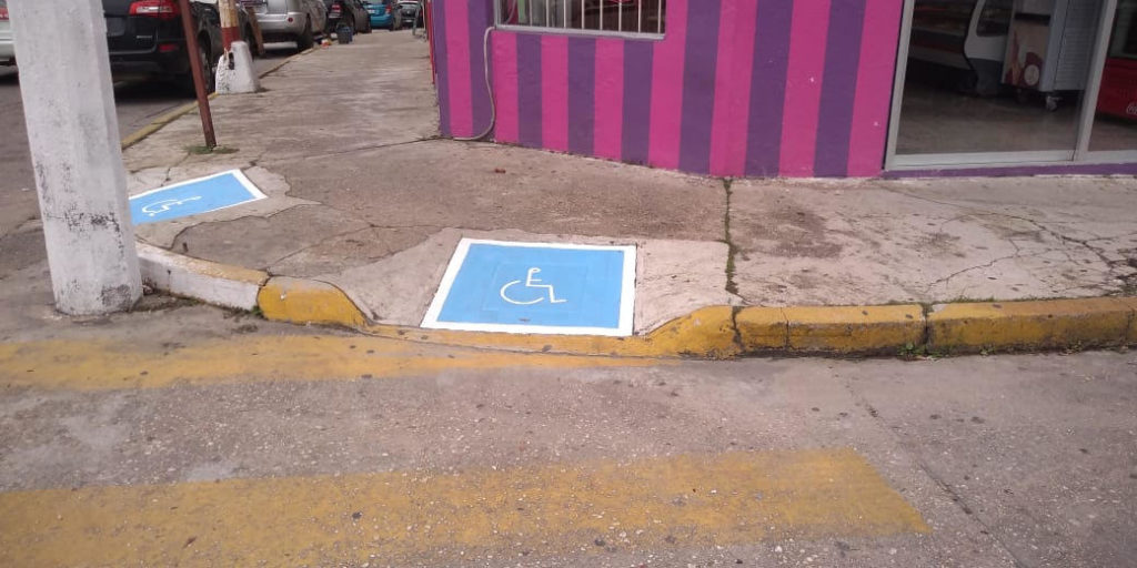 Con la finalidad de facilitar el acceso y tránsito de las personas discapacitadas a espacios públicos y diferentes instituciones, la Delegación de Tránsito y Vialidad en Minatitlán a cargo de Jesús Fernández Céspedes realizó la pinta de señalizaciones en rampas ubicadas calles del centro de la ciudad.
