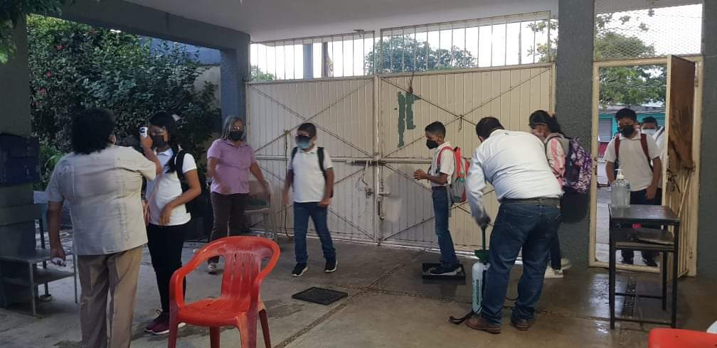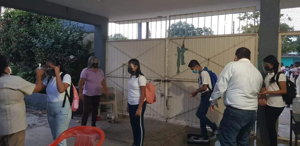 Cabe señalar que en nuestro recorrido por la institución nos percatamos de que cuentan con el filtro sanitario en la entrada como lo establece la secretaría de educación (termómetro infrarrojo, tape, rocío de sanitizante y gel antibacterial), además el ingreso al plantel es de manera organizada y con sana distancia, tomando los diferentes accesos con los que cuenta para que en cada uno de ellos ingresen los diferentes grados, también se está considerando un tiempo de alrededor de 45 minutos entre cambio de turno para que los chicos del matutino puedan salir, mientras que el personal de intendencia vuelva a sanitizar y de ahí entran los alumnos del turno vespertino con las mismas medidas y organización ya establecida.