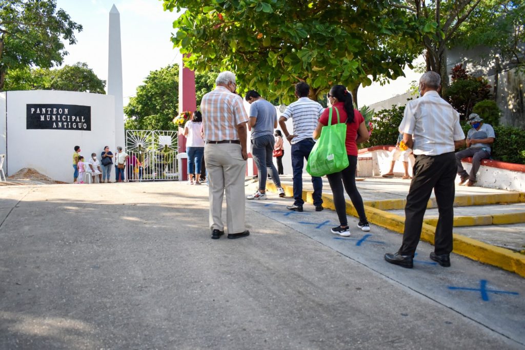 En el Panteón Antiguo, la Directora de Panteones, Elda Gordillo, supervisó personalmente la entrada y salida de grupos de 20 personas al camposanto, pasando por el filtro sanitario, portando cubrebocas, se les tomó la temperatura y se les proporcionó gel antibacterial, además de exhortarlos a guardar la sana distancia dentro del lugar.