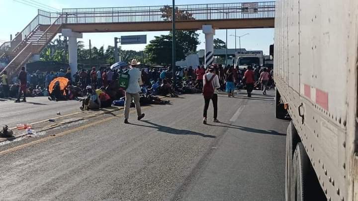 Grupo de inmigrantes bloquea carretera en Tapachula, Chiapas., Generando molestia en sus habitantes…