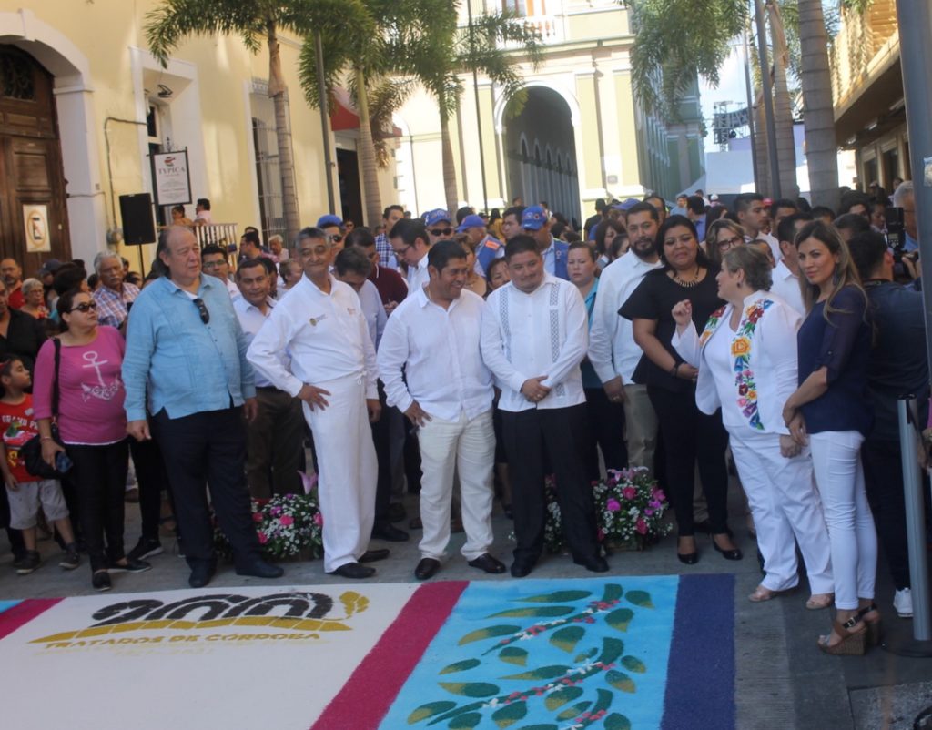 En tanto el tapete conmemorativo a la firma de los “Tratados de Córdoba” fue realizado por artesanos de Huamantla, exhibiendo imágenes de arquitectura cordobesa.