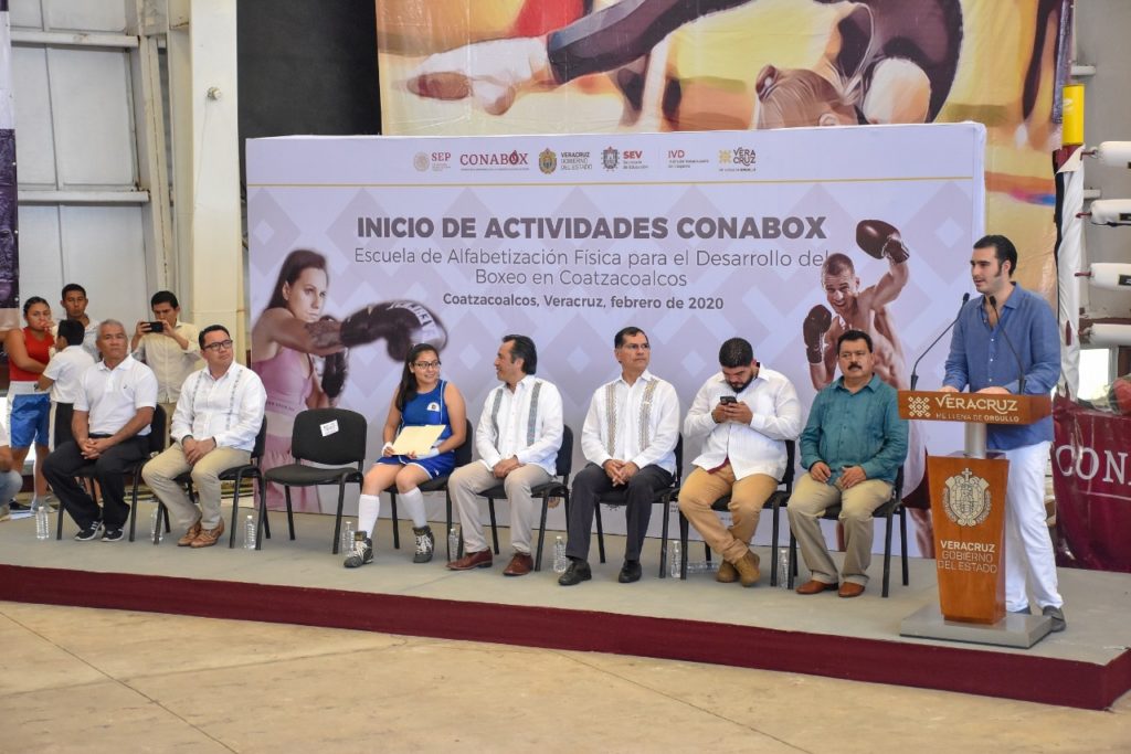Coatzacoalcos, Ver.- Teniendo como sede el Gimnasio Municipal de la colonia Nueva Obrera, autoridades de los tres ordenes de gobierno, encabezadas por Miguel Torruco Garza, Comisionado Honorifico de Boxeo por parte del Presidente de la República y el Gobernador del Estado, Cuitláhuac García Jiménez, en compañía del Alcalde Víctor Manuel Carranza Rosaldo, arrancaron las actividades de la Comisión Nacional de Boxeo (CONABOX), en la cual se inauguró la primera Escuela de Alfabetización Física para el Desarrollo del Boxeo en Coatzacoalcos.