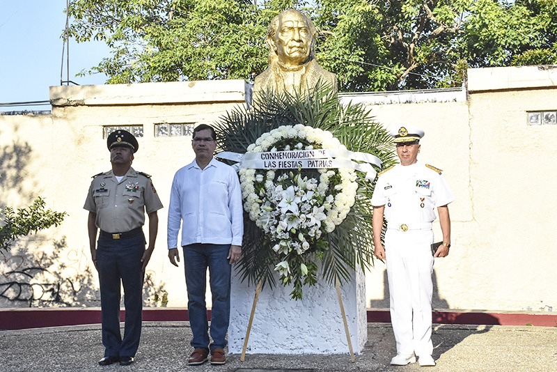 Posteriormente, el munícipe porteño en compañía de autoridades navales y militares, procedió a la colocación de la ofrenda floral en el busto de Miguel Hidalgo y Costilla “El Padre de la Patria”, en conmemoración de las próximas fiestas patrias.