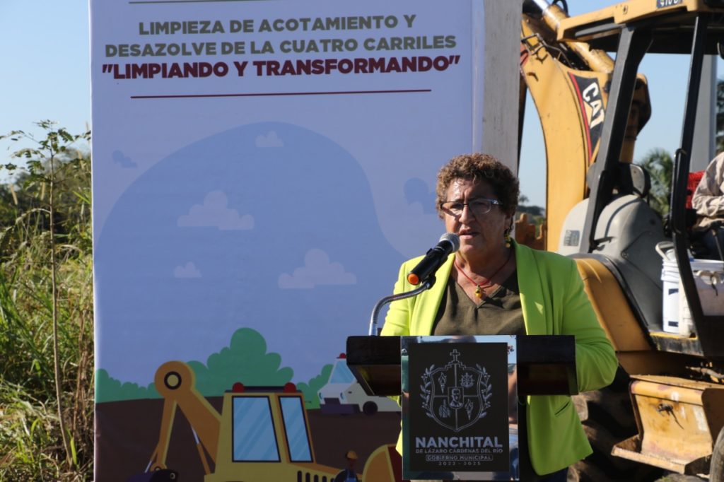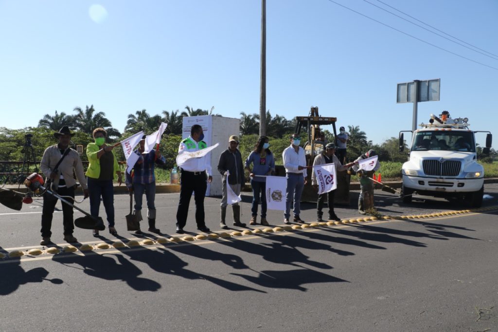 Esta mañana, autoridades encabezadas por la Alcaldesa Esmeralda Mora Zamudio, dieron el banderazo de inicio al Programa de limpieza de acortamiento y desazolve en la carretera cuatro carriles de Nanchital.