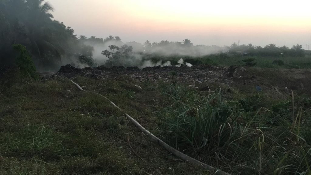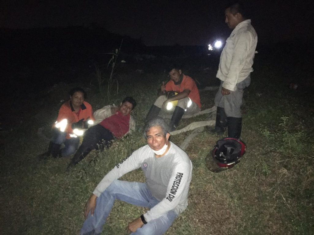 Tras la atención durante todo el domingo de varios incendios de pastizales, el personal del Cuerpo de Bomberos recibió alrededor de las 20:45 horas, la notificación de que se requería apoyo para combatir el siniestro del basurero ubicado en la carretera Coatzacoalcos-Minatitlán, labores en las que se dispuso de varias cuadrillas encabezadas por el Titular de la Unidad de Protección Civil, David Esponda Cruz.