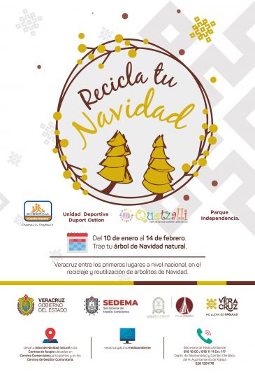 Coatzacoalcos, Ver.- Siendo el décimo año de participación consecutiva, el Ayuntamiento de Coatzacoalcos en coordinación con la Secretaría del Medio Ambiente invita a la ciudadanía en general, a participar en la campaña “Recicla tu Navidad 2020”.