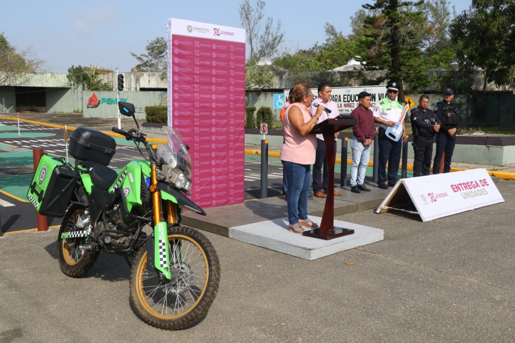 La Alcaldesa, Esmeralda Mora Zamudio entrega una motopatrulla a la delegación 41 de tránsito del estado.