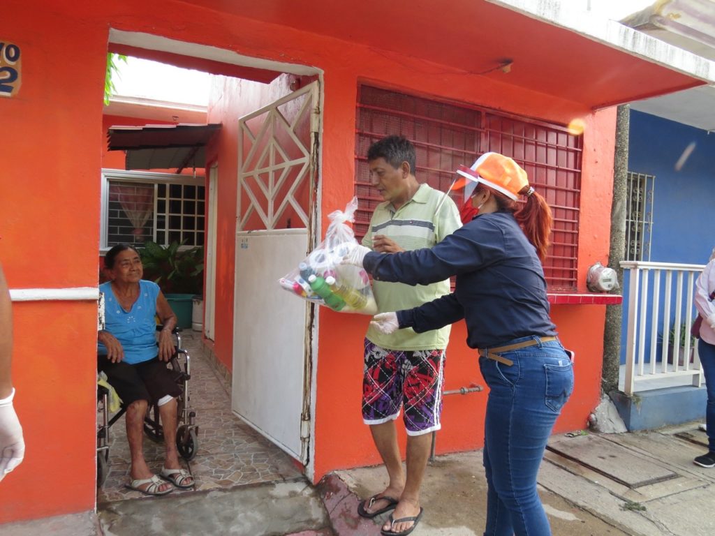 Coatzacoalcos, Ver.- Continuando con las acciones en beneficio de la población vulnerable en esta contingencia por el COVID-19, el Gobierno Municipal a través de la Regiduría Cuarta a cargo de la Lic. Fabiani Cueto Salinas y la Dirección de Acción Social, llevaron esta mañana despensas a familias de la colonia Villas del Sur.