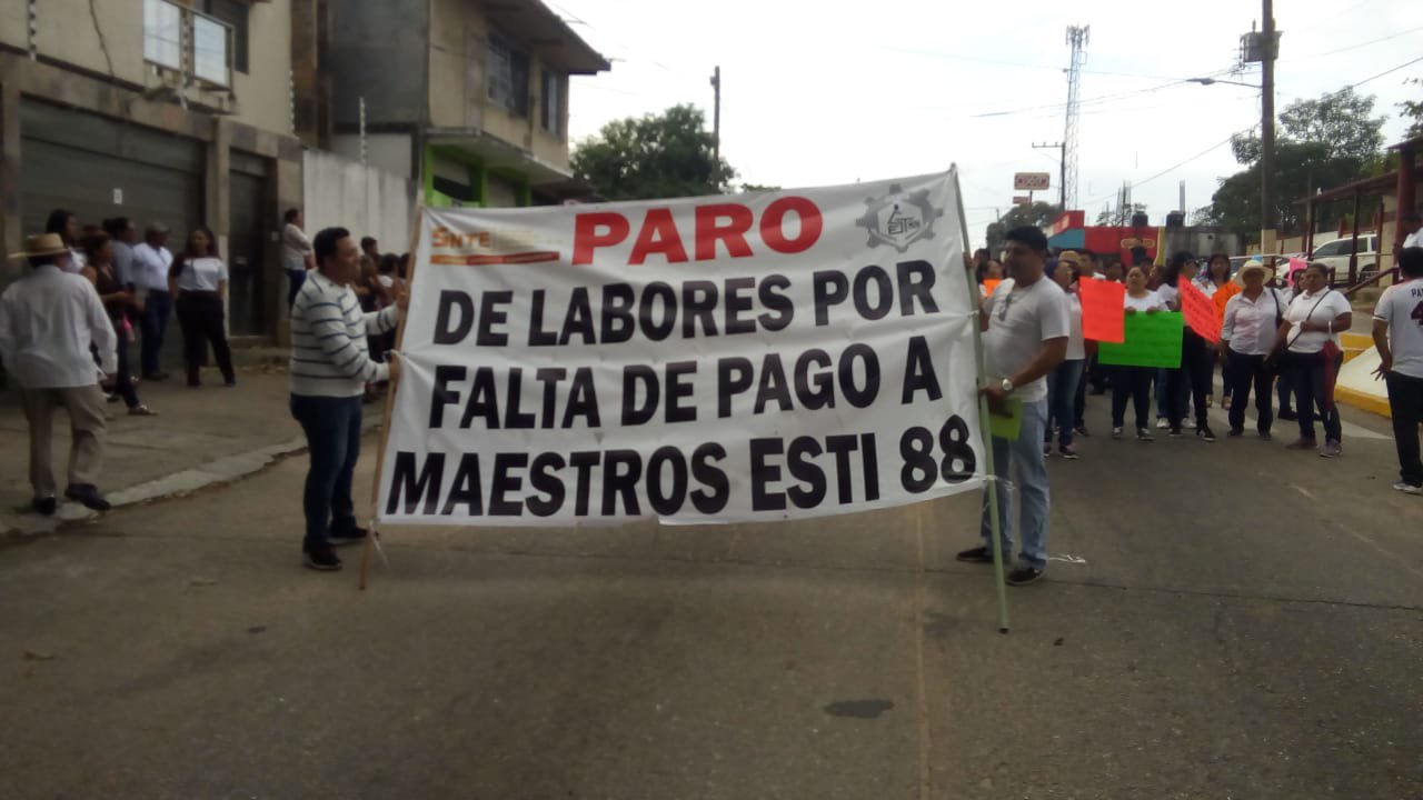 Maestros, padres de familia y alumnos de la Escuela Secundaria Técnica 88 marchan y piden la intervención del Ayuntamiento ante la secretaría de educación de Veracruz (SEV), para que cumpla con los pagos de los 20 docentes y así los 800 educandos puedan regresar a sus salones para recibir clases, las cuales han quedado suspendidas desde el 20 de febrero.