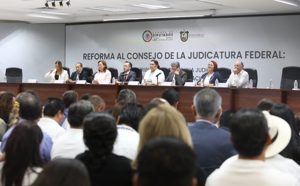 En este acto democrático, que contó con la presencia del gobernador del estado, ingeniero Cuitláhuac García Jiménez; de la gobernadora electa, ingeniera Rocío Nahle García, y del senador de la República, Ricardo Monreal Ávila, las y los ponentes disertaron sobre la reforma al Consejo de la Judicatura Federal, en relación con la creación del Tribunal de Disciplina Judicial y el órgano de administración.
