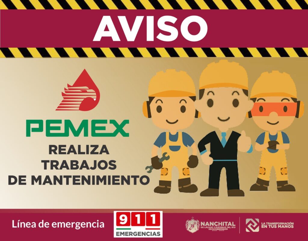 Nanchital, Ver.- Se informa a la ciudadanía, que este día Petróleos Mexicanos llevará a cabo trabajos controlados de mantenimiento en el municipio de Nanchital.
