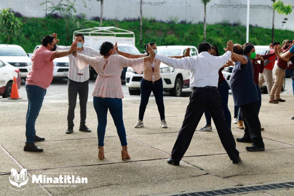 Minatitlán, Ver. – Personal del Gobierno de Minatitlán que preside la doctora Carmen Medel Palma, inició el programa de unificación de personal, denominada “Actividad física laboral”.