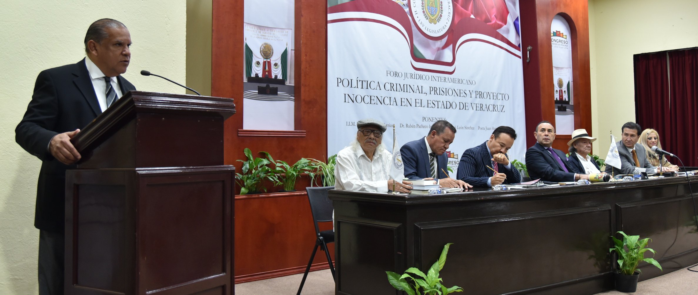 En el auditorio Sebastián Lerdo de Tejada del Congreso de Veracruz, se llevó a cabo el Foro Jurídico Interamericano “Política criminal, prisiones y proyecto inocencia en el estado de Veracruz”, inaugurado por el secretario de la Mesa Directiva de la LXV Legislatura del Estado, diputado Jorge Moreno Salinas y que tuvo la participación de Tomás Mundo Arriasa, Rubén Pacheco Inclán, el escritor José León Sánchez y el poeta Juan Hernández.