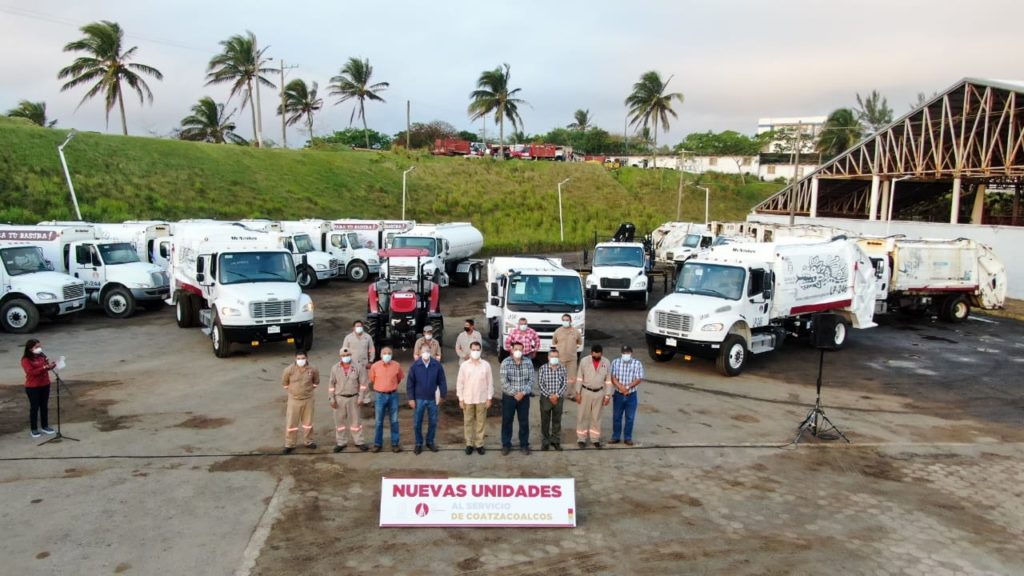 Coatzacoalcos, Ver.- Esta mañana, en las instalaciones de la Expo Feria, autoridades municipales dieron el banderazo de inicio de operaciones de una pipa, una grúa, un tractor y 3 nuevas unidades compactadoras para Limpia Pública, que incrementan el parque vehicular que esta administración pone al servicio de Coatzacoalcos.